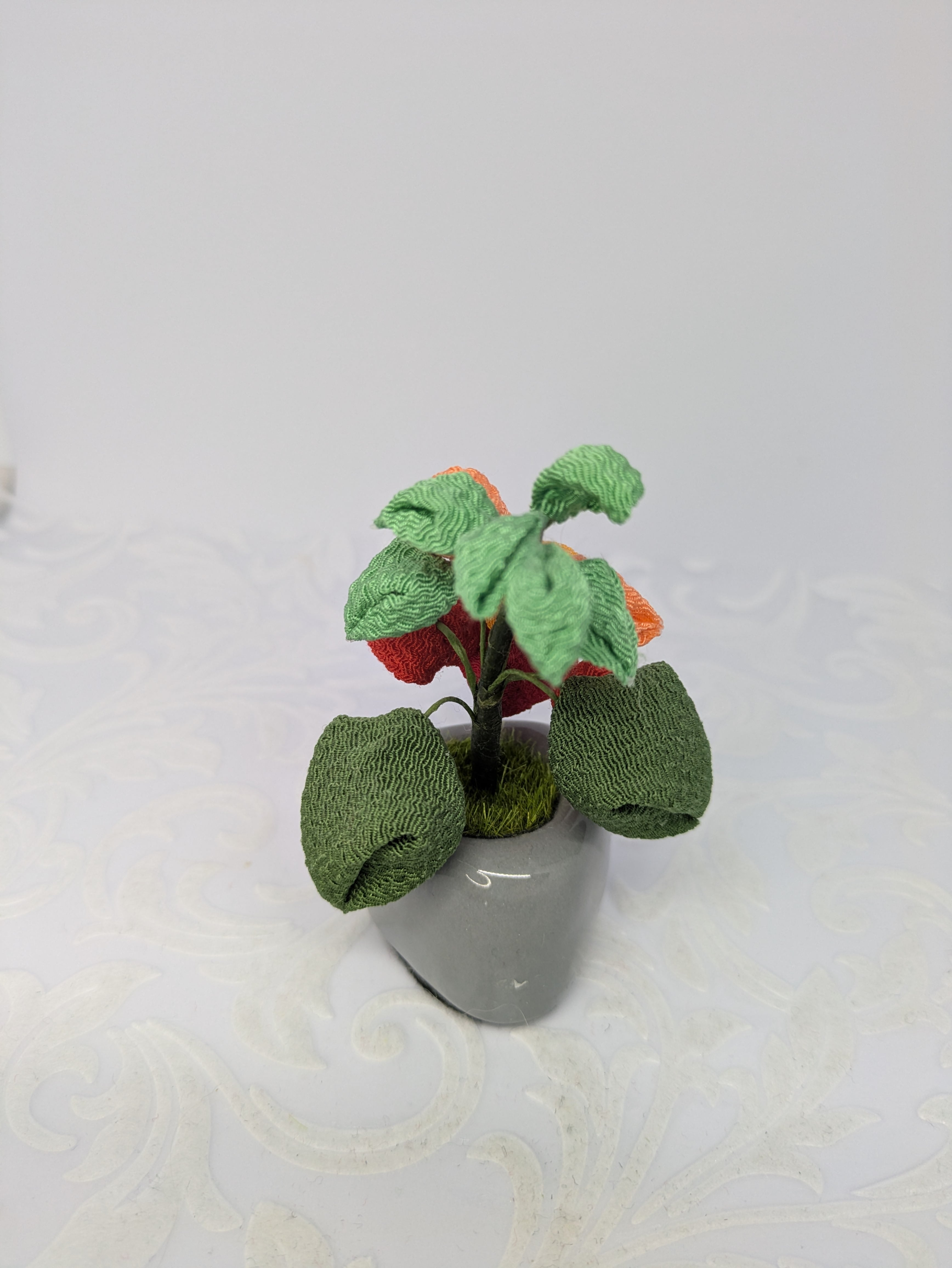 「ほおづき(フラワーアレンジ つまみ細工 一輪挿し)」は、約3.5cmのポットにさりげなく植えてみました 高さは約9cmで、どんな場所にも自然に馴染むこのフラワーアレンジは、デスクやリビング、玄関などにさりげなくおしゃれを添え、夏の雰囲気を演出します。小さな隙間に置いて頂けますので置き場所を選ばず 大切な方への贈り物にも最適です!