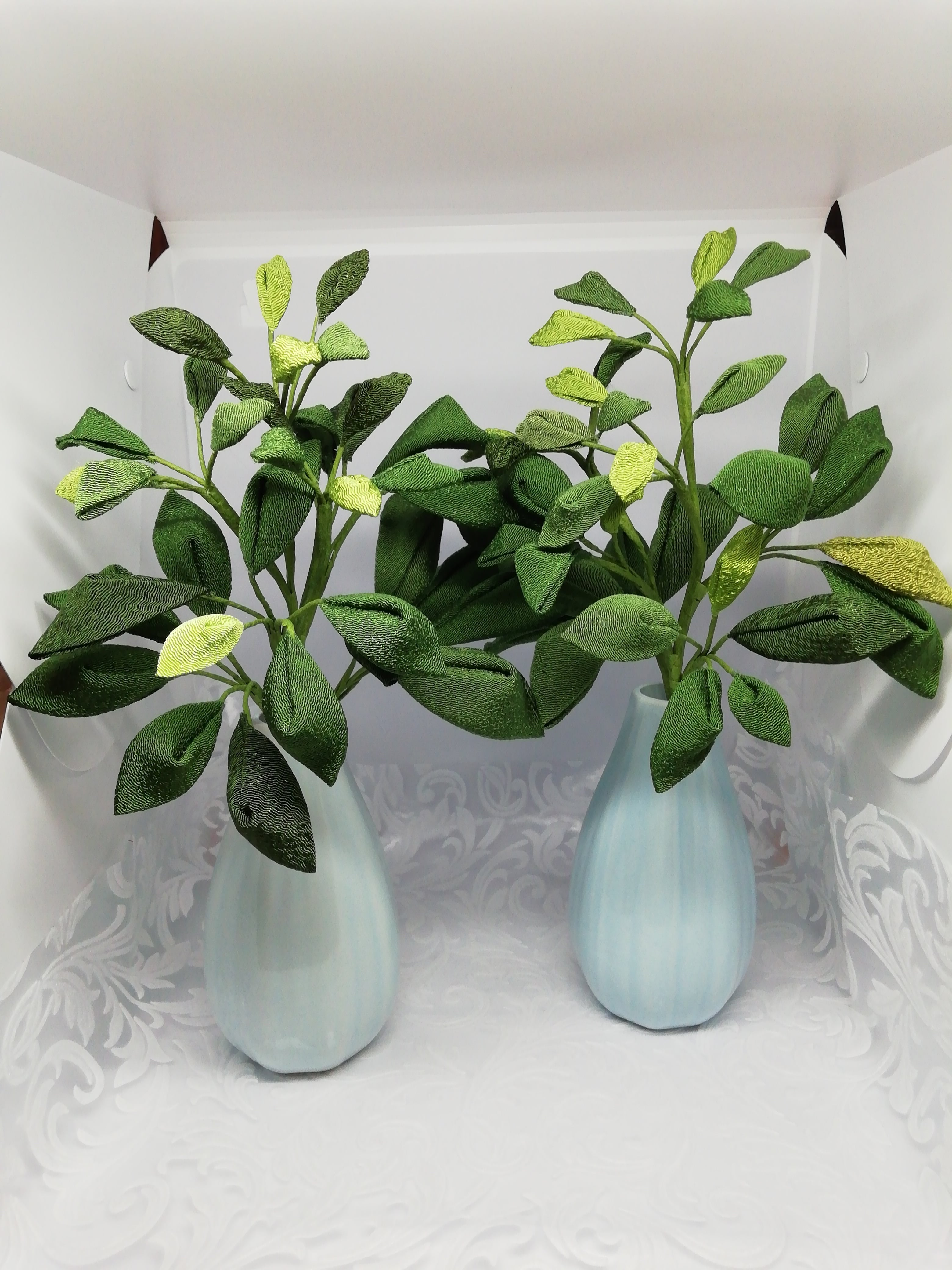つまみ細工の樒(シキビ)仏花です 地域によって呼び名がちがうようですが 仏壇等にお供えするお花です 暑い季節 生花の代わりに つまみ細工での樒はいかがでしょうか?