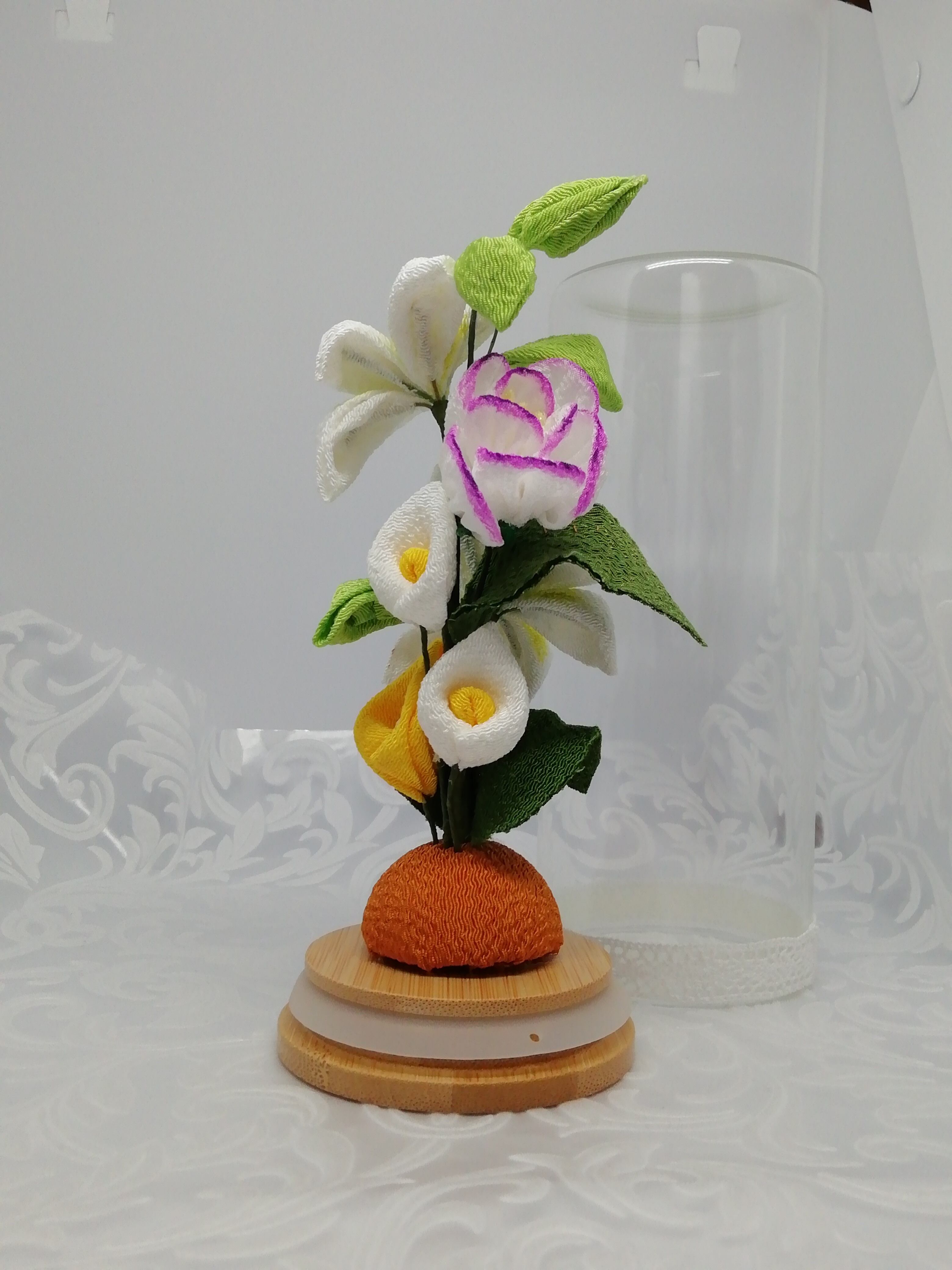 つまみ細工は水分と圧縮に弱いのですが 瓶入りなので その点は大丈夫です