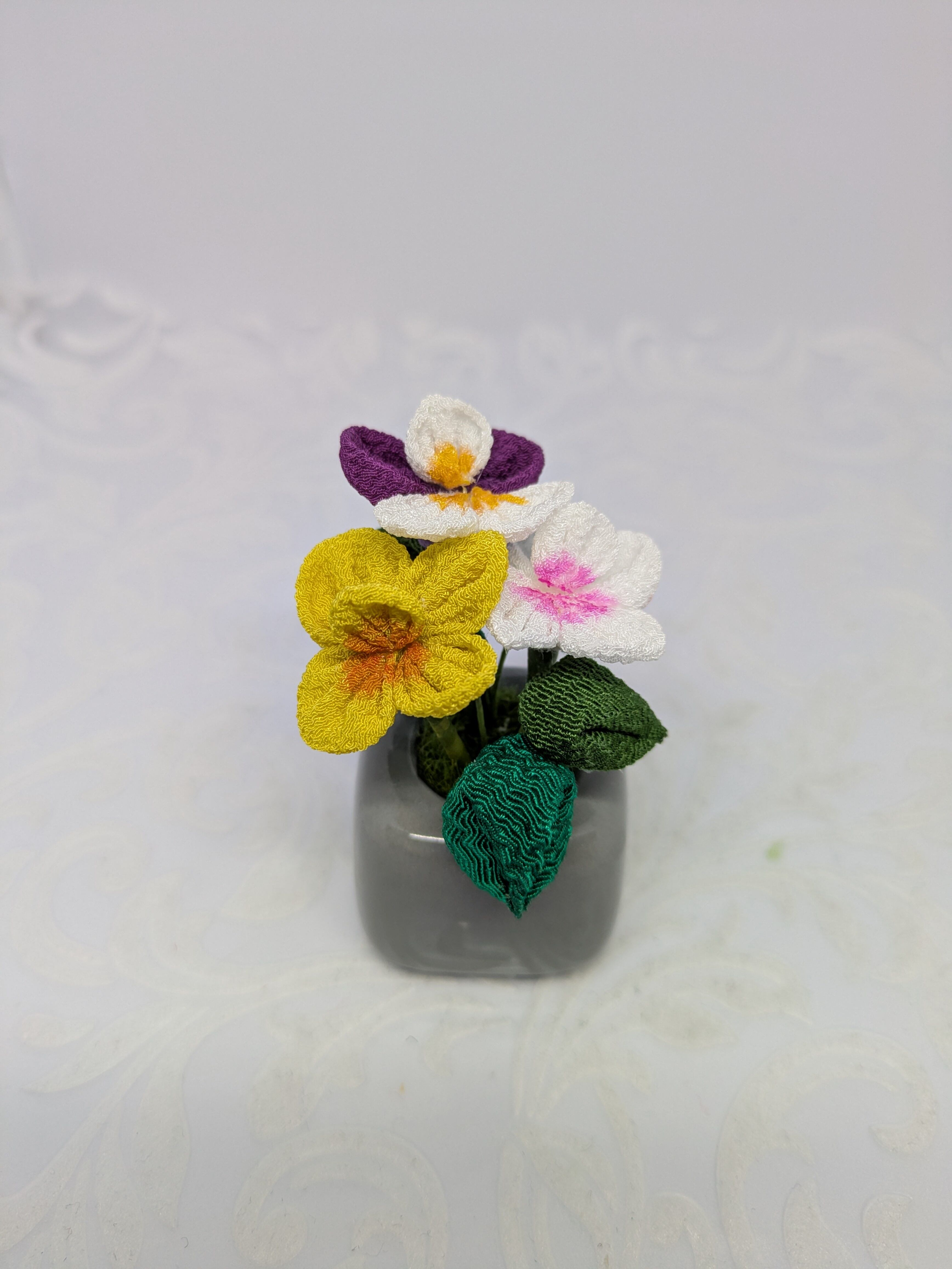 パンジー(フラワーアレンジ つまみ細工 一輪挿し)