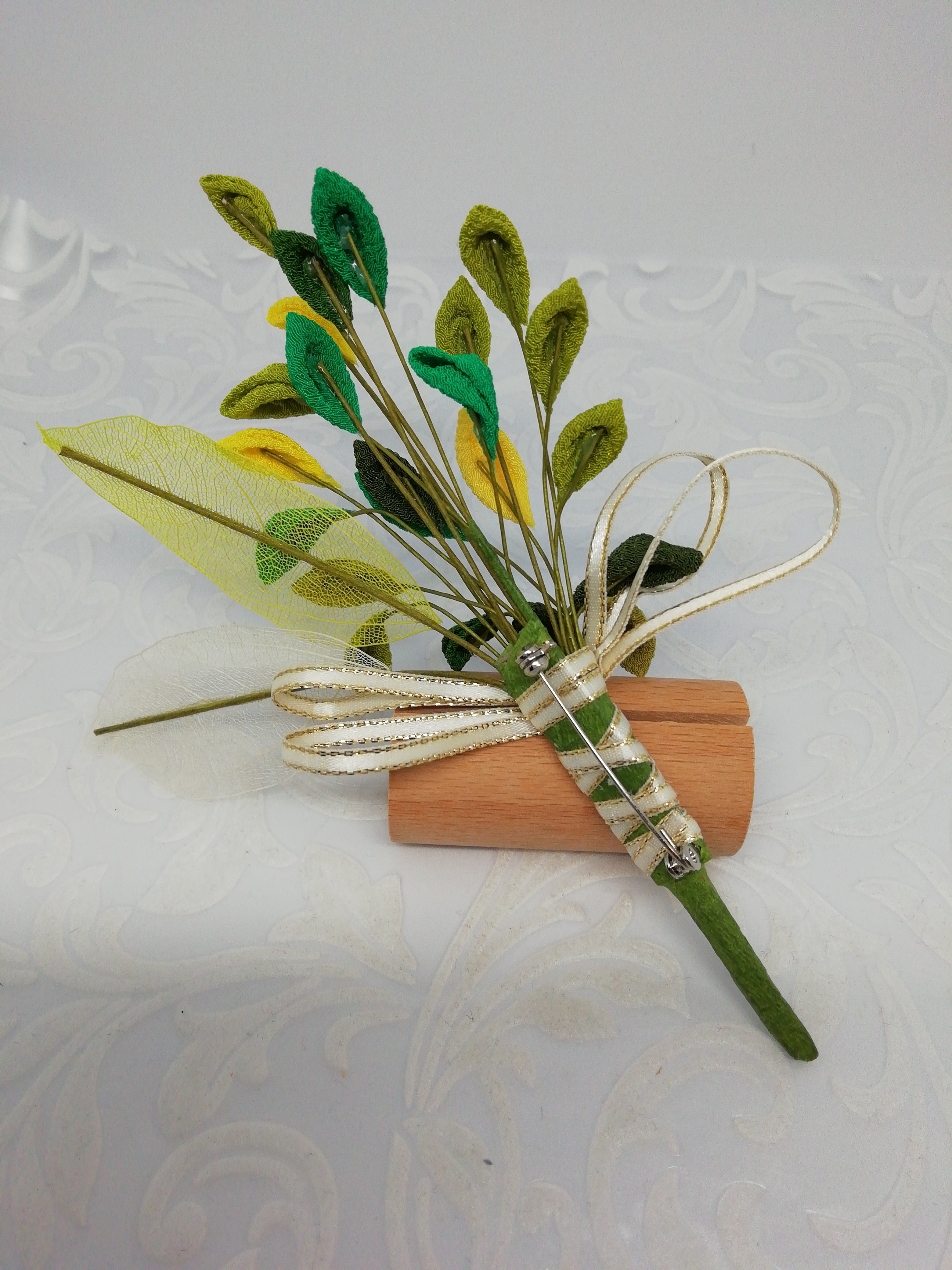 大きさは横幅約13cm 高さ約14cm 裏にブローチピンを付けてあります 新緑の葉っぱをイメージして作りましたが 年中お使い頂けるアイテムです