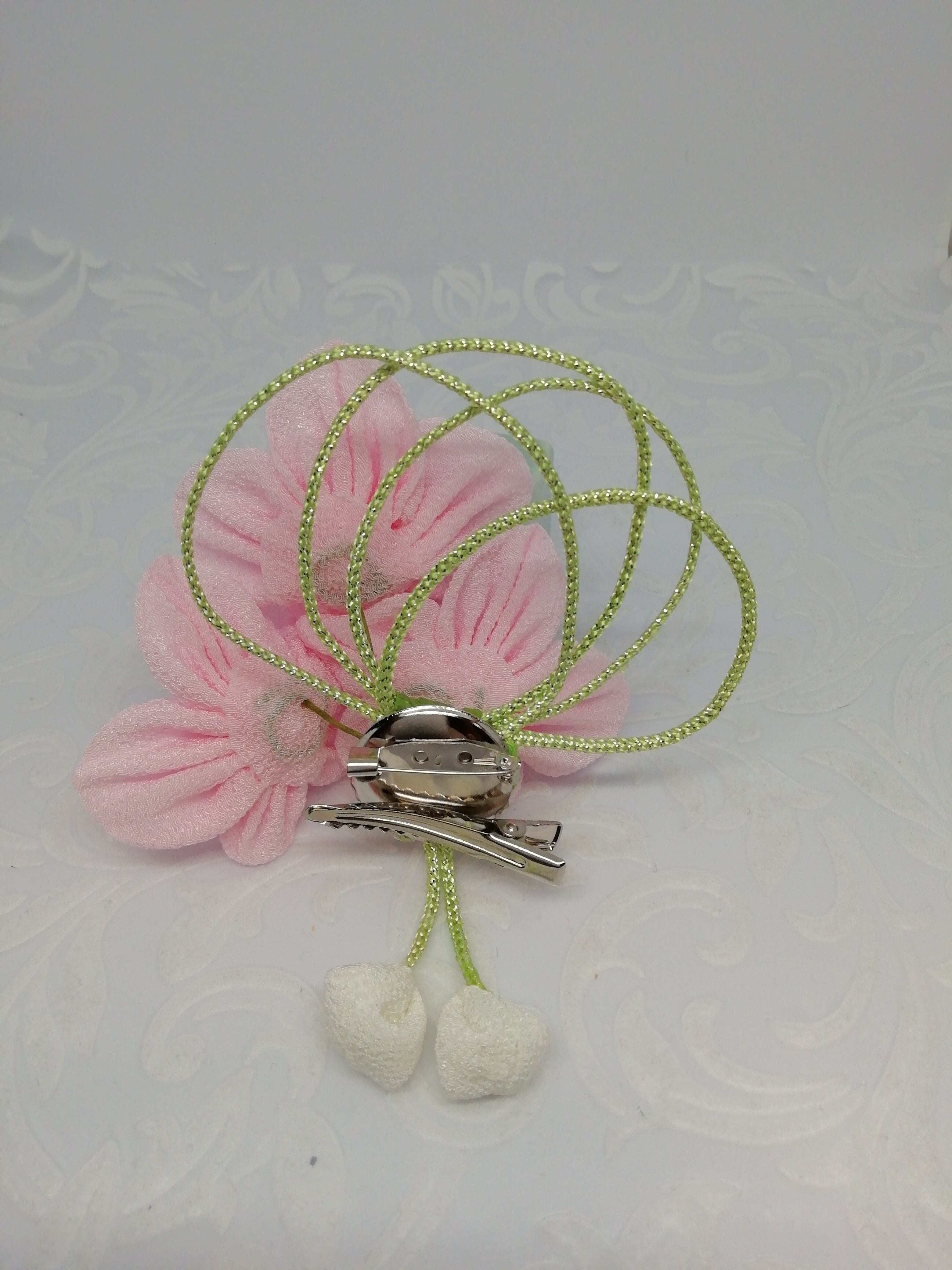 このコサージュは、ソフトなピンク色と華やかなフォルムが特徴的で、結婚式やパーティー、日常のコーディネートに華を添えるアイテムです。どのシーンでもおしゃれなアクセントとしてお使いいただけます。